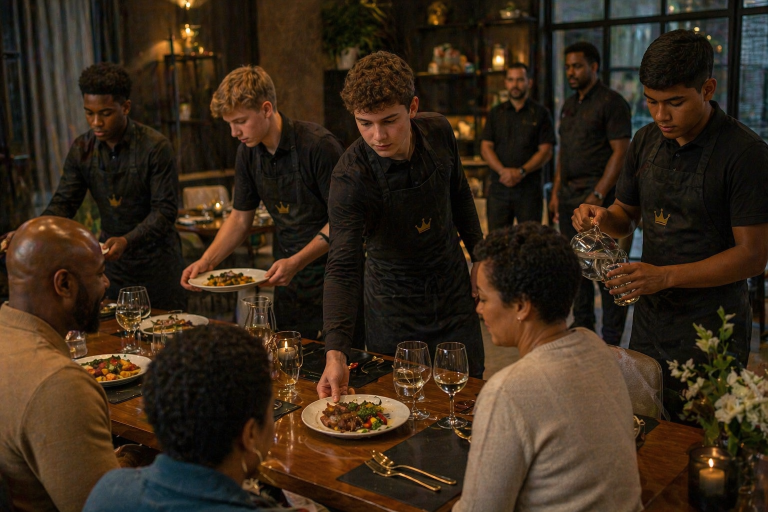A mid-program experience where participants prepare and present a full dining experience for a guest of their choice. This moment reflects more than skill—it reveals growth, awareness, and the ability to carry themselves with intention in a real-world setting.