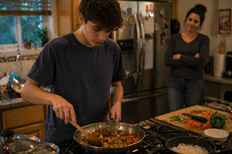 Participants learn how to prepare real meals from start to finish—developing confidence, responsibility, and attention to detail through repetition.